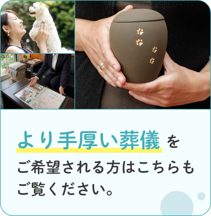 実際に利用された飼い主さまからも「心をこめて見送ることができた」とのお声をいただいております。